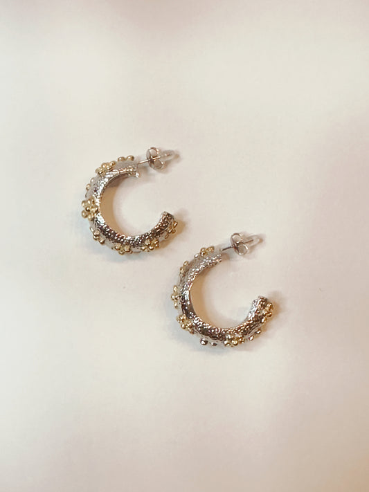 Organic Two-Toned Floral Chunky Hoop Earrings